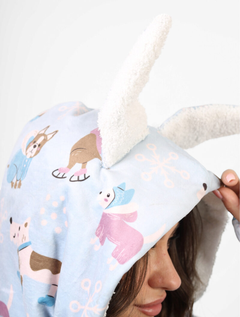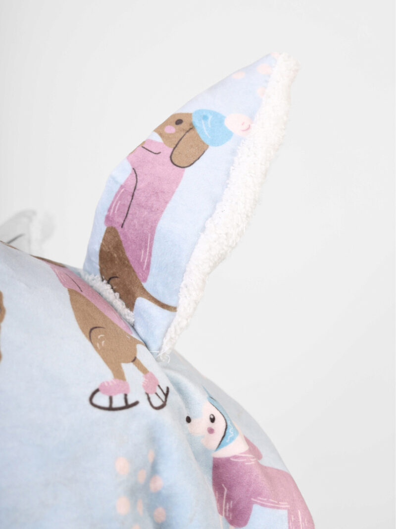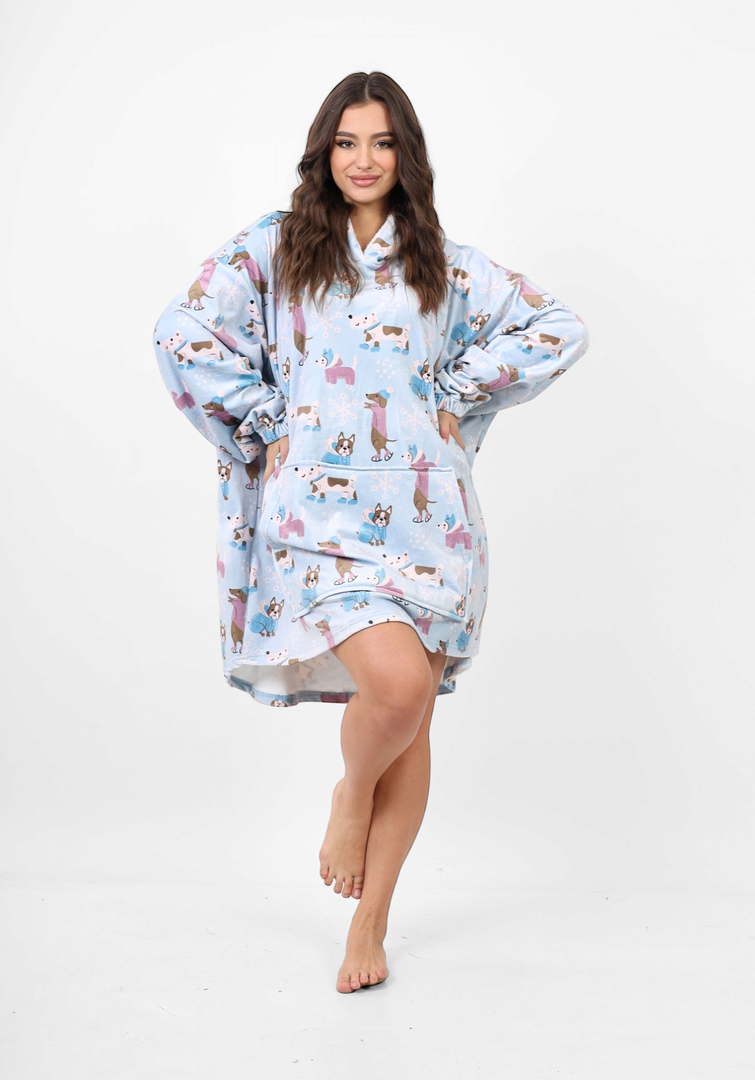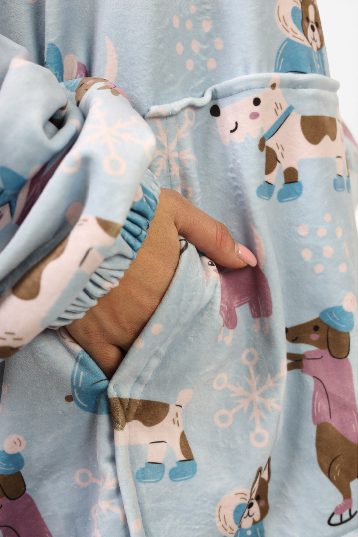 Our Hoodie Blanket keeps you warm and comfy during the winter nights.