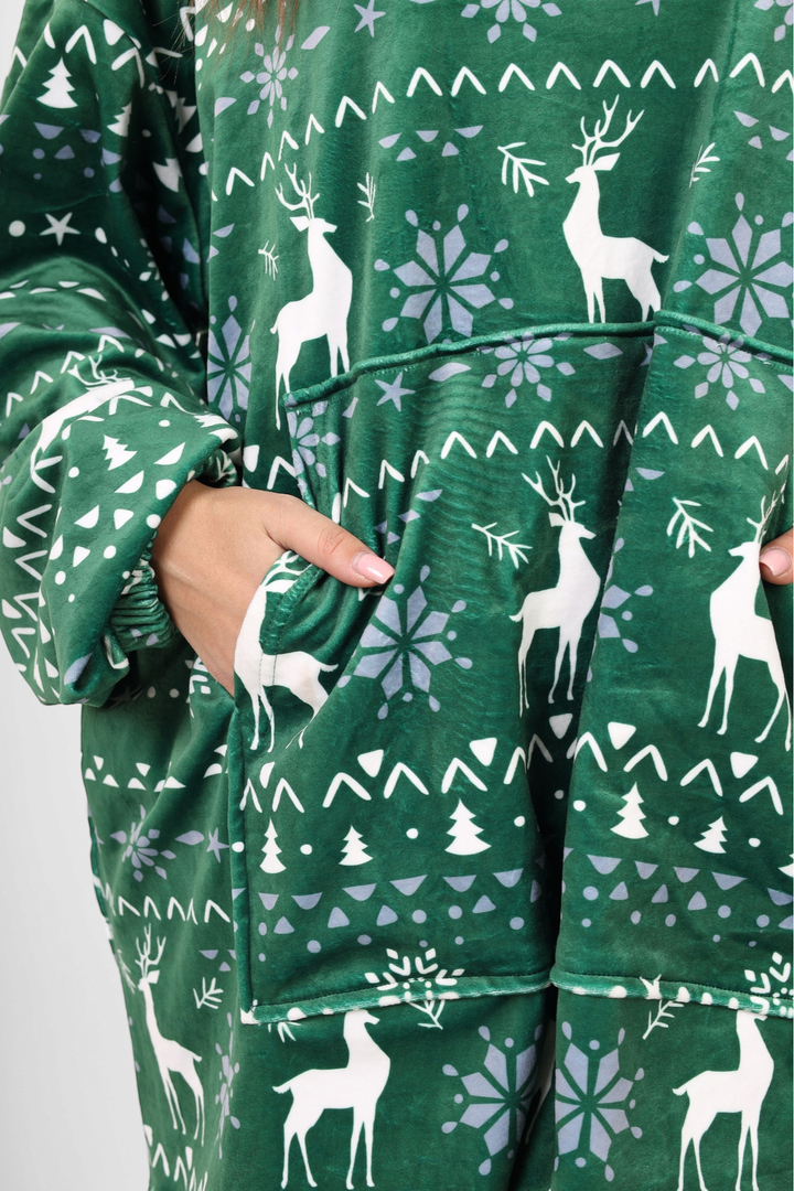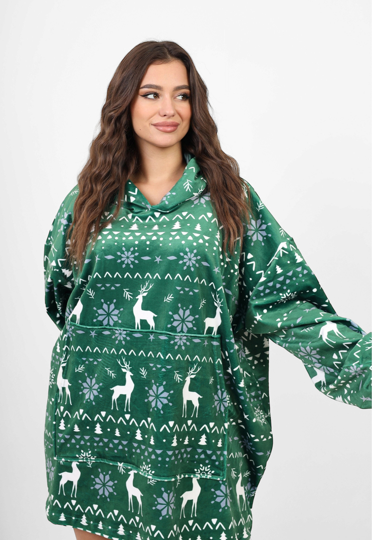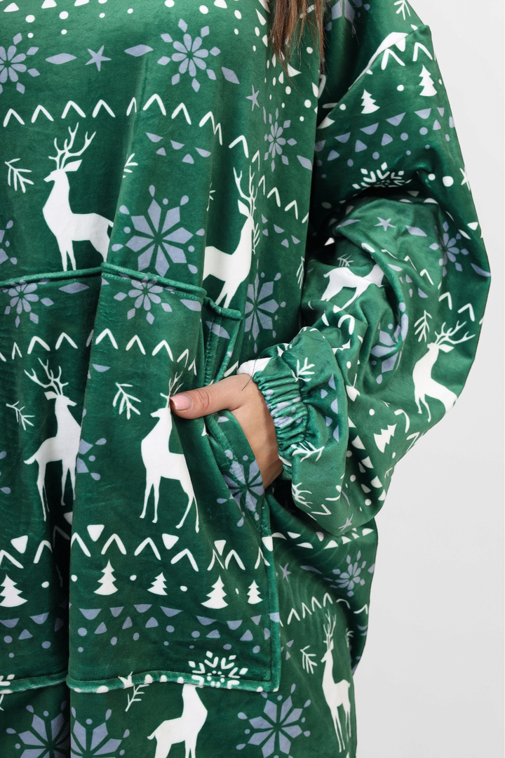 Our Hoodie Blanket keeps you warm and comfy during the winter nights.