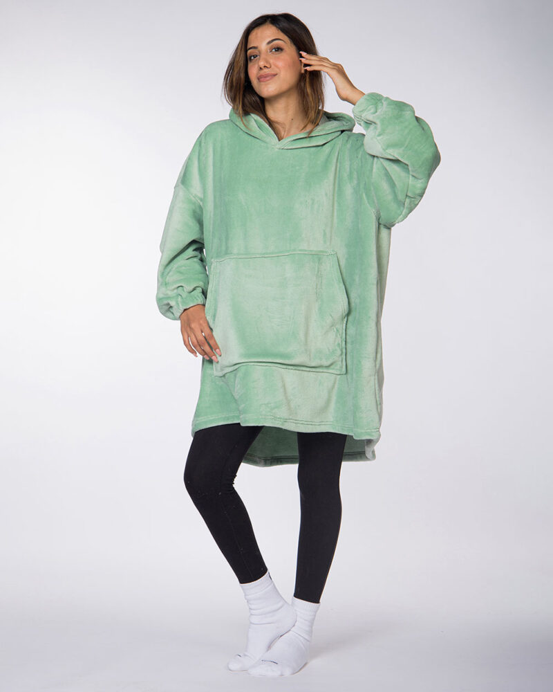 Our Hoodie Blanket keeps you warm and comfy during the winter nights.