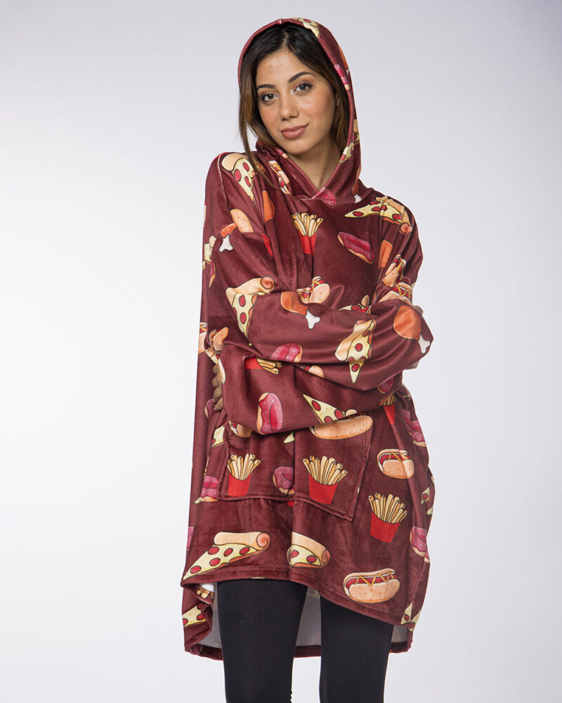 Our Hoodie Blanket keeps you warm and comfy during the winter nights.