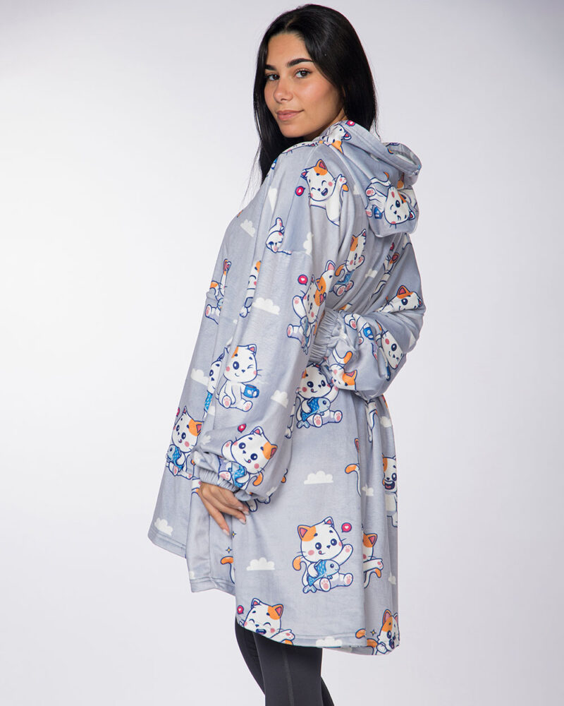 Our Hoodie Blanket keeps you warm and comfy during the winter nights.