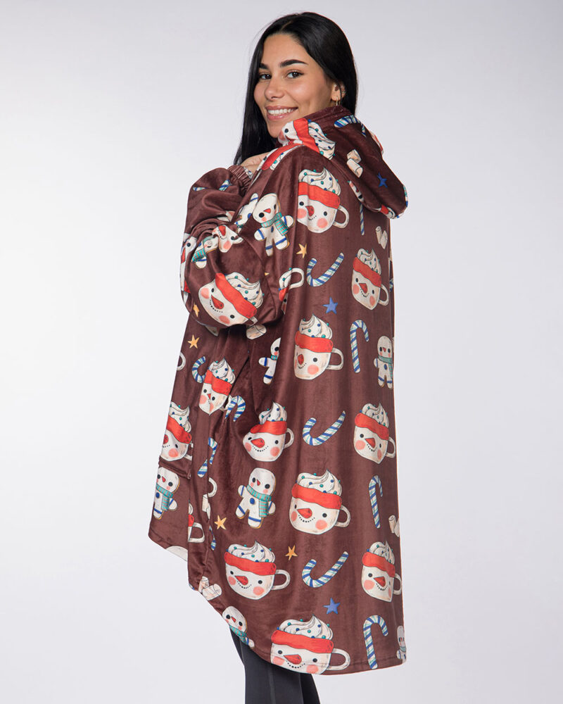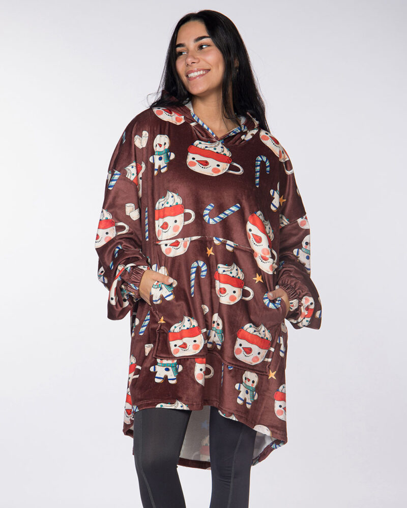 Our Hoodie Blanket keeps you warm and comfy during the winter nights.