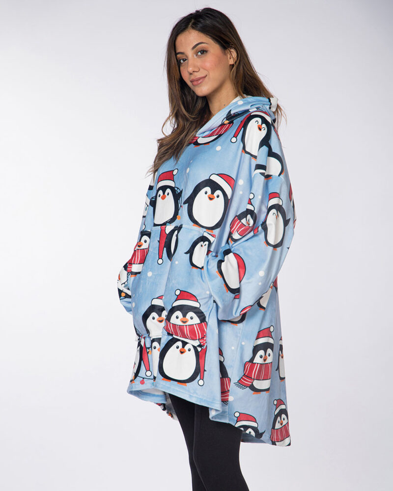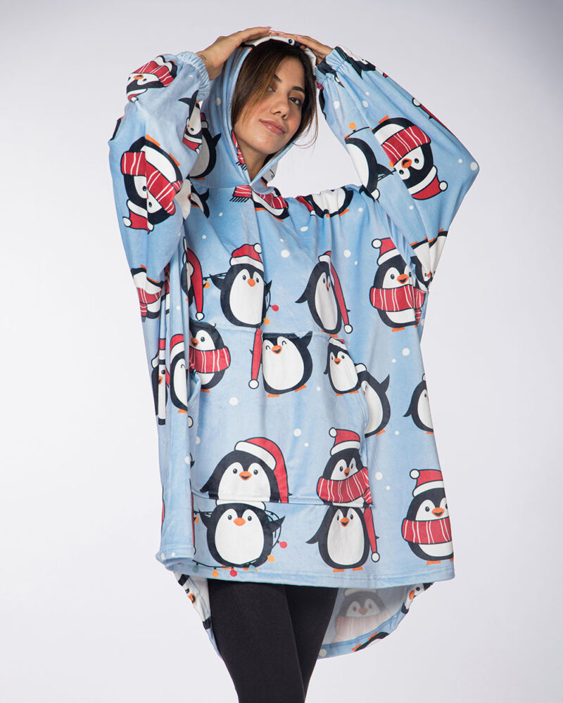 Our Hoodie Blanket keeps you warm and comfy during the winter nights.
