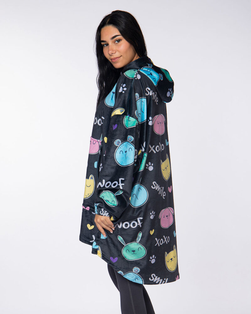 Our Hoodie Blanket keeps you warm and comfy during the winter nights.