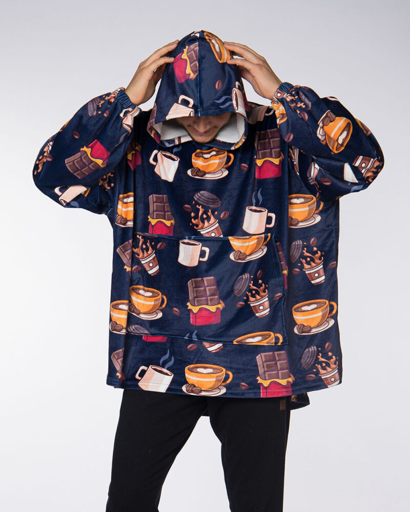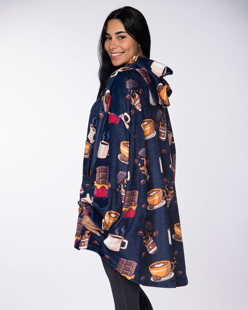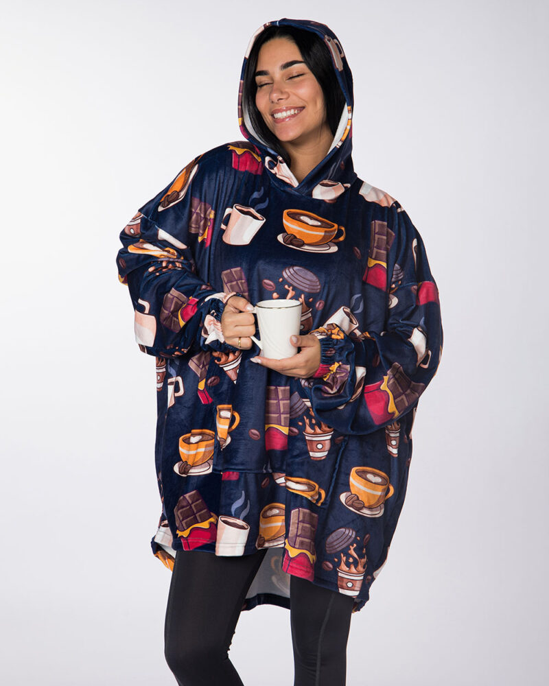 Our Hoodie Blanket keeps you warm and comfy during the winter nights.