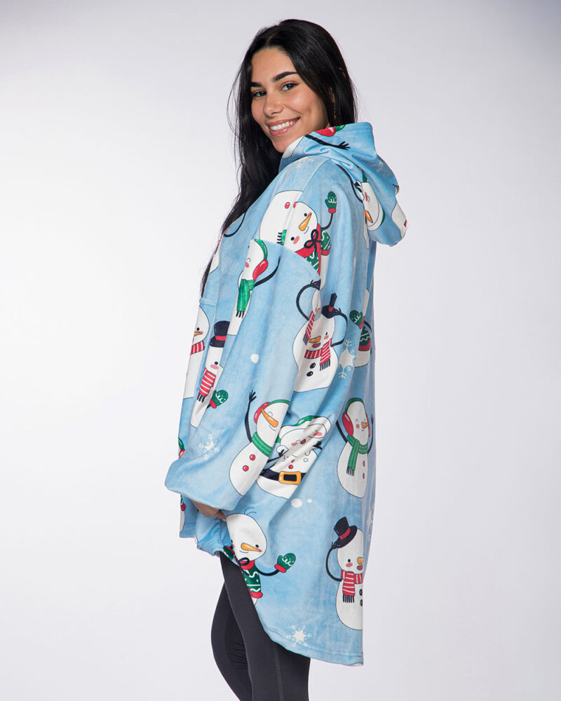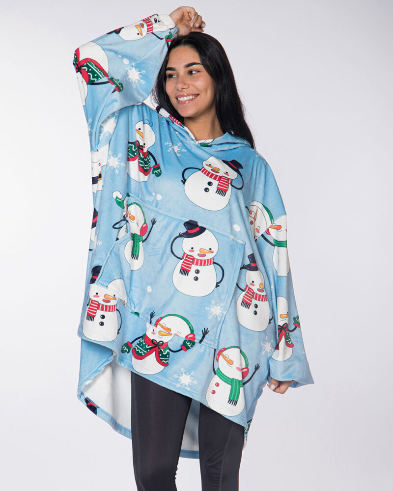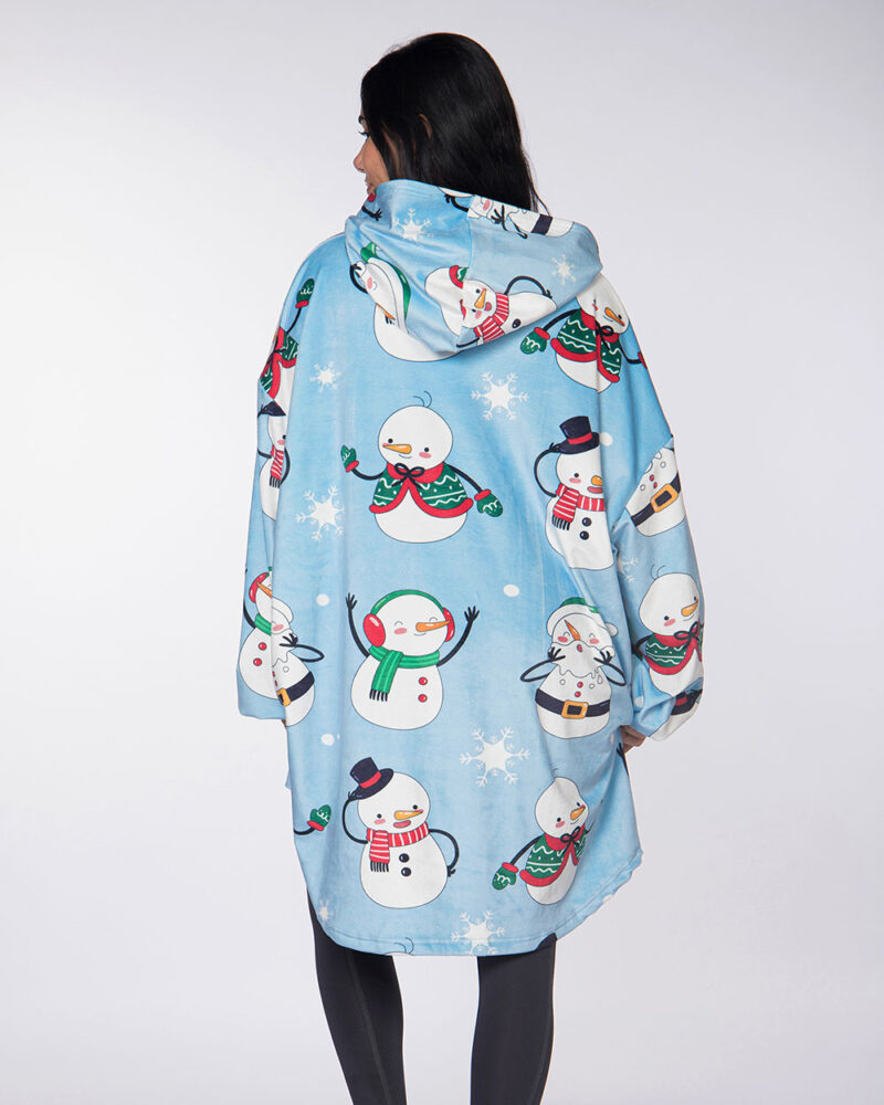 Xmas Snowman Blue Hoodie Blanket