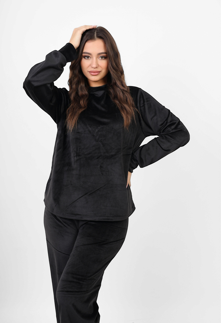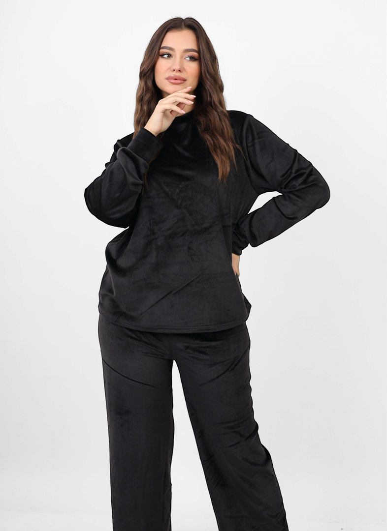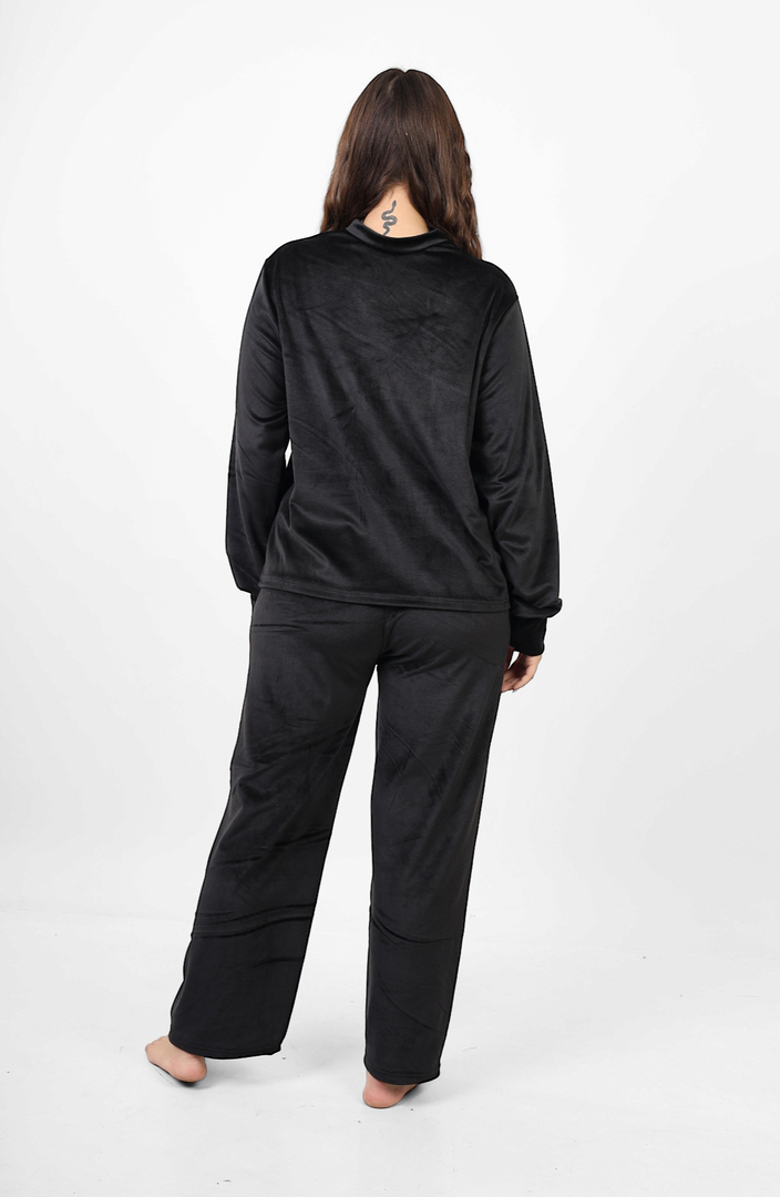 The night pjs set is the set you need to look stylish in this comfy set , It is the set you need to run errands, go shopping or even host your friends. This set features long sleeved top and wide leg pants. This set comes with soft velvet fabric, it will be your go to set this wintery season.